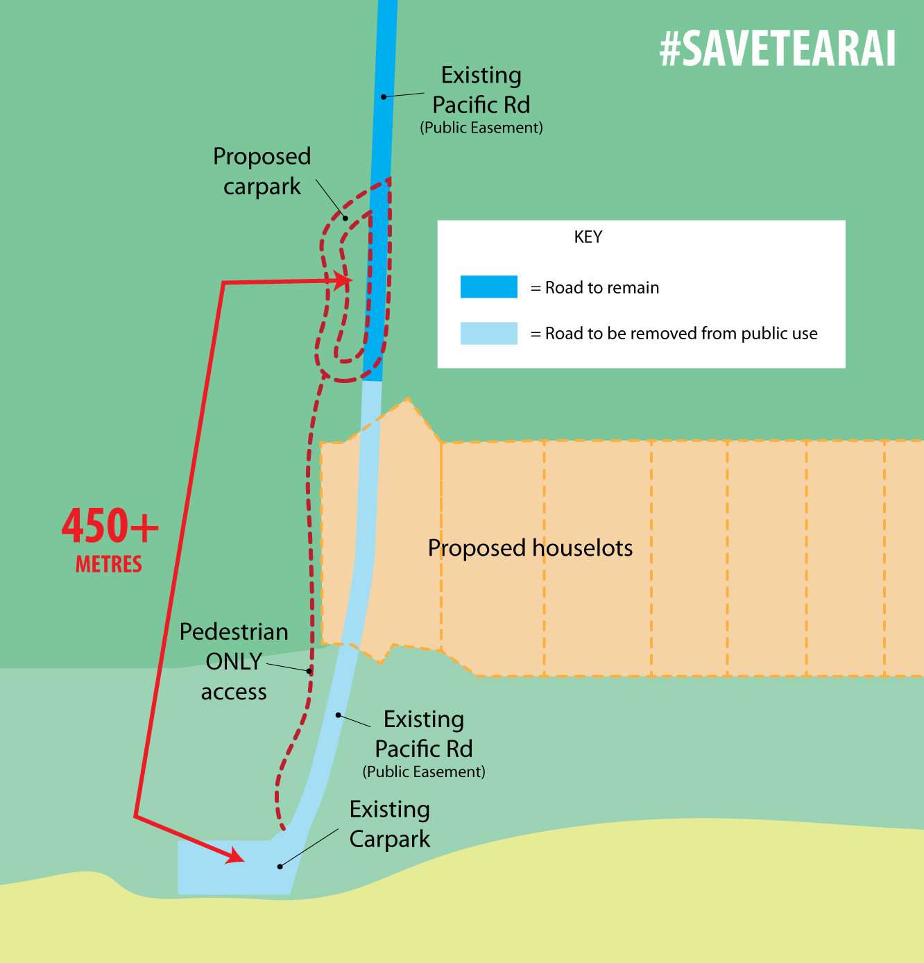Developers have moved in and are attempting to privatize a large part of Te Arai beach by restricting the level of access the public has to the reserve and beach by way of relocating the pre-exisiting carpark inland 413-450m and providing a pedestrian only access way from there to the beach. THIS IS NO JOKE. Auckland City Council have been complacent in allowing this to happen and have admitted to not checking the details of the resource application.